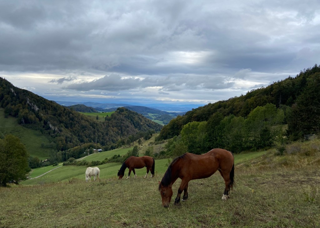 Auf seinen 40 Hektaren Juraweiden bis auf 1000 m Höhe über Meer bietet der Betrieb einen interessanten Ort als Ferienweide für diese Tiere.